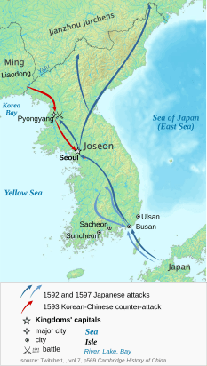 Japanese General Toyotomi Hideyoshi was fully aware of the need to control the seas during the invasion. Having failed to hire two Portuguese galleons to help him, he increased the size of his own fleet to 1700 vessels, assuming that he could overwhelm the Korean navy with numerical superiority.