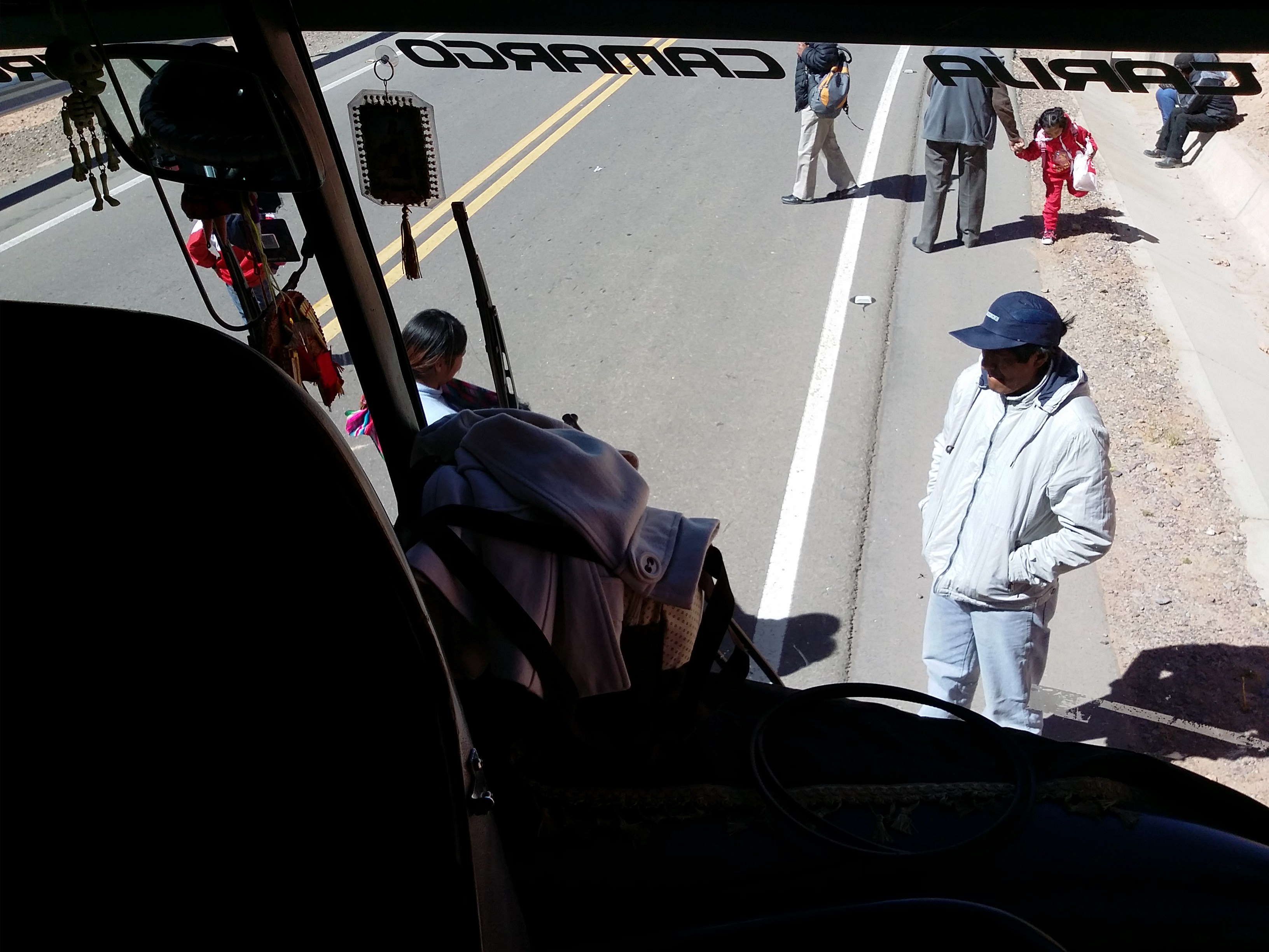 I’m thinking about all of those tourists back at Lake Titicaca, demanding authenticity from the Uros people on their floating islands. Where are they now? I paid about four dollars for this bus ticket, and I think the Bolivians are grossly undercharging… All they have to do is market this as the authentic Bolvian bus experience, and they could charge ten times that.