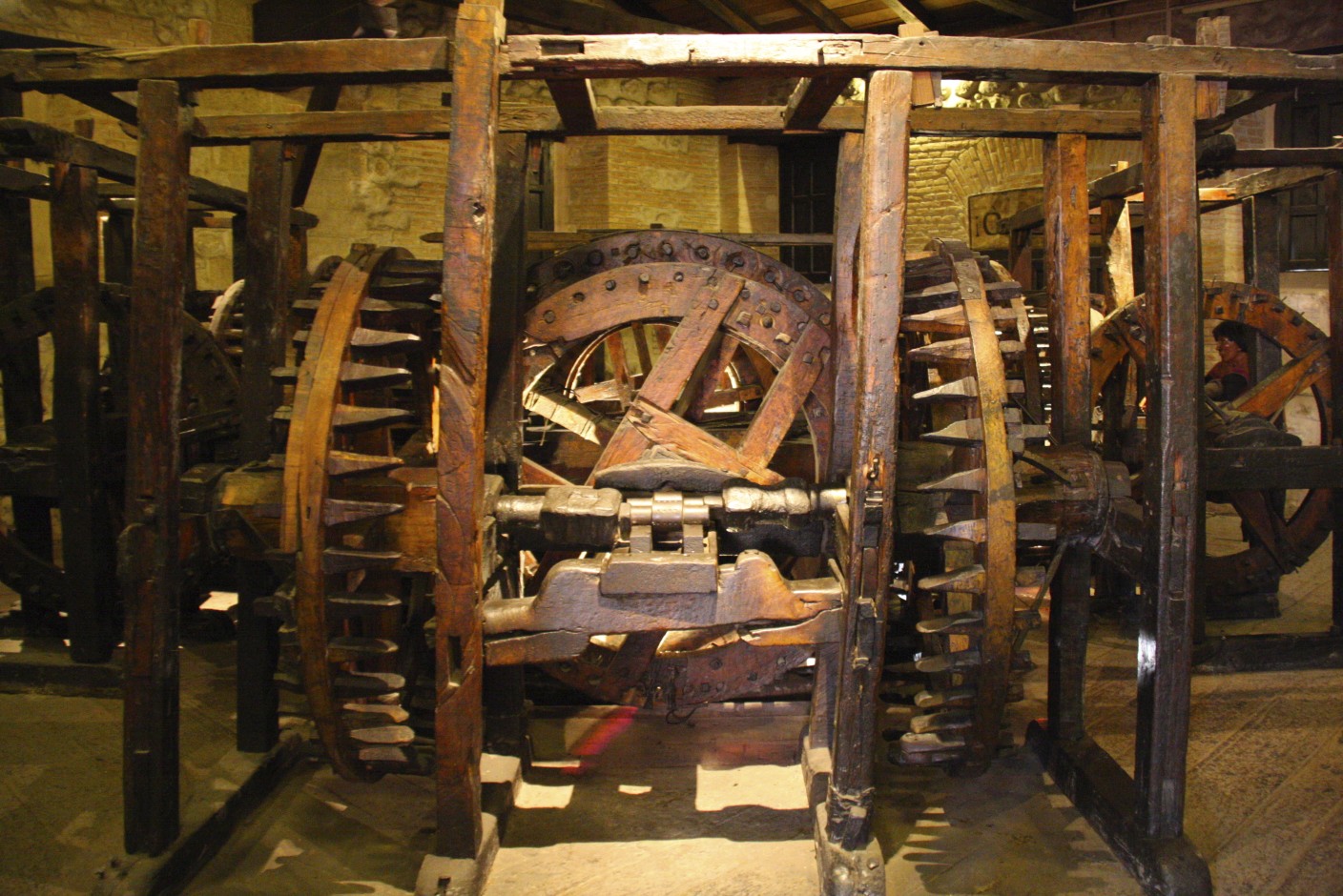 The gears would ultimately press glowing hot silver into uniform sheets from which indigenous workers would mint silver coins.