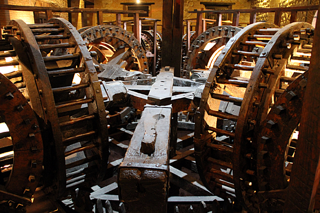 These gears are part of a massive, room-sized state-of-the-art machine, imported from Spain and later duplicated by indigenous craftsmen.