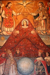 the Virgin Mary, fused with the Cerro Rico — the mountain which provided Potosí with its silver. Native people worship pachamama, or the Earth, and by equating the land with the Virgin, Holguí