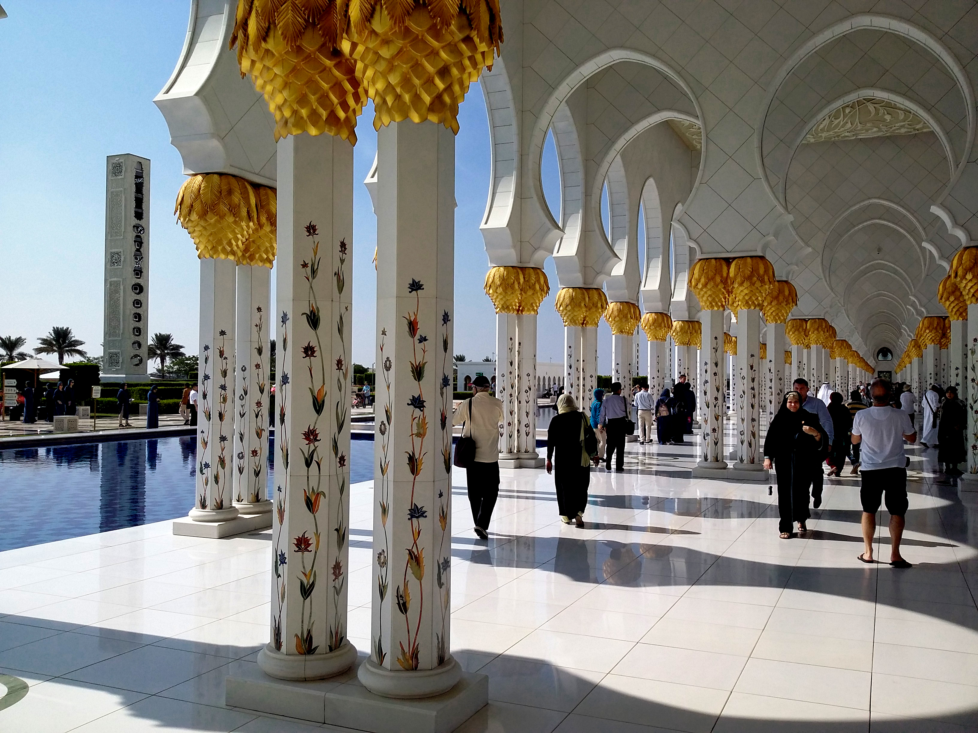There are more than 1000 columns in the grand mosque, each inspired by the shape of a palm tree and meant to recall the life-giving date palms of Medina, the Prophet’s city.