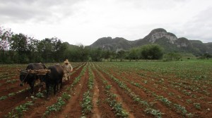 A campesino cultivating tobacco. His tools and methods are much the same as those that an enslaved laborer might have used in the time of Las Casas, though, it must be noted, without the coercive violence of an overseer. (Vinales Valley, Cuba, 2017.)