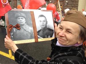 A woman proudly displays photos of relatives who served in the war – in Putin’s Russia, the memory of the Great Patriotic War has been revived and reinvigorated, a king of 4th of July, Thanksgiving, and Veteran’s Day rolled into one. (Moscow, Russia, 2017.)