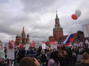 In the annual Immortal Regiment parade, over 500,000 Russians and foreign attendees march in commemoration of those who perished and those who survived World War II. (Red Square, Moscow, Russia, 2017.)