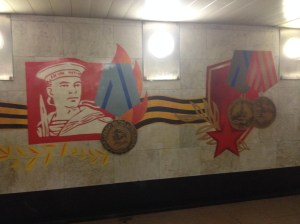 2017-05-08 15.56.35 Patriotic Banner featuring the Ribbon of St. George, Moscow Metro, Victory Day 2017.