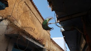 In Muslim countries, the symbol for a pharmacy is often the green crescent moon. This pharmacy serves a small neighborhood in the medina – and offers shade to pedestrians below.