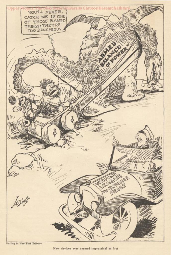 5. Member states were expected to “respect and preserve as against external aggression” the territorial integrity of other members and to disarm “to the lowest point consistent with domestic safety.” In other words, war against one member was war against them all – and all nations should reduce their militaries to a bare minimum. All states were required to submit complaints to a Court of International Justice before going to war – and then to accept the court’s rulings on whether war was justified.