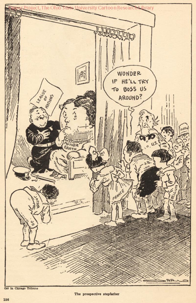 Create a political cartoon or meme to persuade your classmates to support or reject the League of Nations. Your cartoon or meme should reflect at least one of the descriptors featured above, and your stance on membership should be clearly communicated! Try to incorporate some of the techniques seen in the examples below – symbolism, exaggeration, fear of the unknown… Bonus points including more than one descriptor! Even more for making me laugh by including some school appropriate humor!